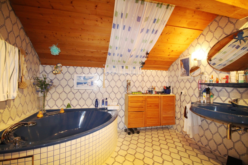 Das Haupthaus des Wohn- und Geschäftsanwesens wurde im Jahre 1978 erbaut. In dem Haupthaus befinden sich 5 Wohneinheiten und eine Geschäftseinheit, darunter eine hochwertig ausgebaute Dachgeschosswohnung mit Balkon und zwei Dachterrassen, Fußbodenheizung und einem wunderschönen Kachelofen. Eine weitere, hochwertige, abgeschlossene Wohnung mit separatem Eingang befindet sich im hinteren Teil des Wohn- und Geschäftshauses. Im Haupthaus sind noch zwei weitere Wohnungen untergebracht, wobei eine der beiden Wohnungen eine großzügigen Balkon bietet. Das EG kann ebenfalls als eine separate Wohnung genutzt werden. Im Haupthaus ist noch eine Querbauwohnung die zur Zeit vermietet ist. Die restlichen Räumlichkeiten sind momentan nicht vermietet.
