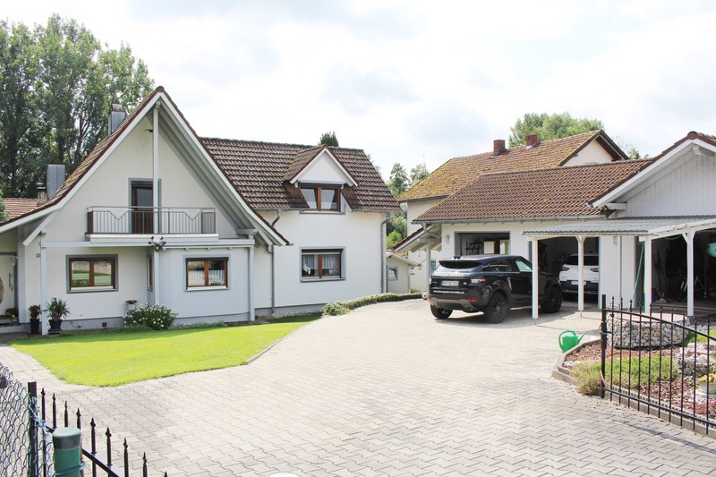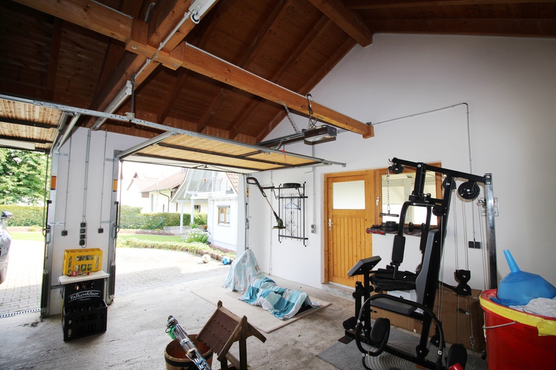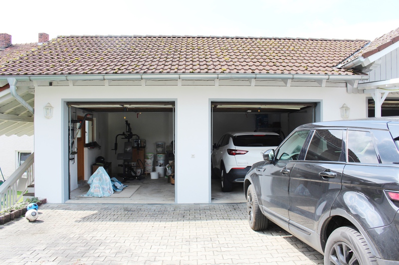 Zu dem Anwesen gehören eine großzügige Garage für 3 PKWs und ein Carport der sich direkt vor einer der drei Garagen befindet. In den Garagen mit Sichtdachstuhl befindet sich zusätzlich ein Schwedenofen, mit dem alle drei Garagen beheizt werden können. Über der dritten Garage ist eine Staufläche vorhanden.
