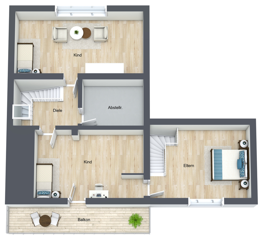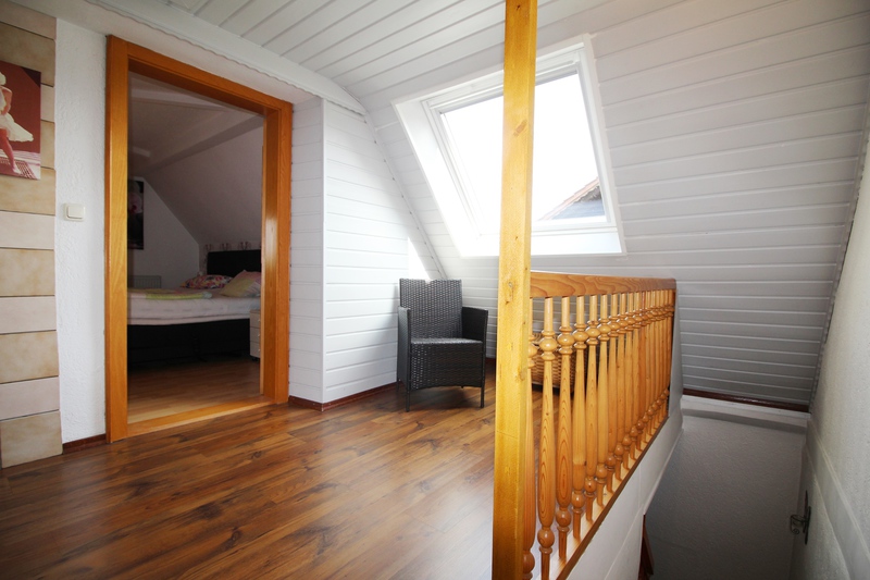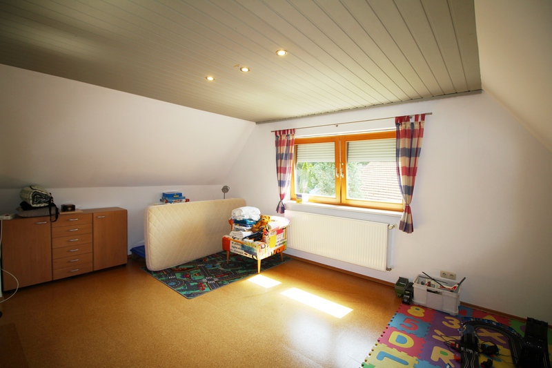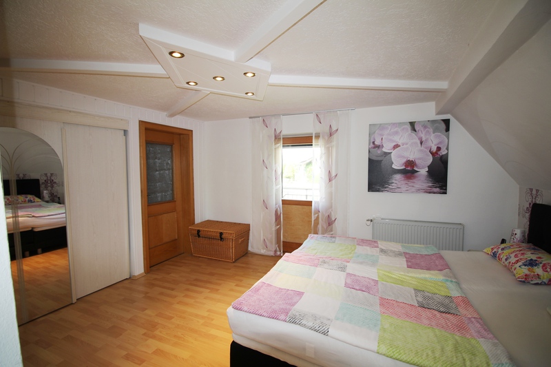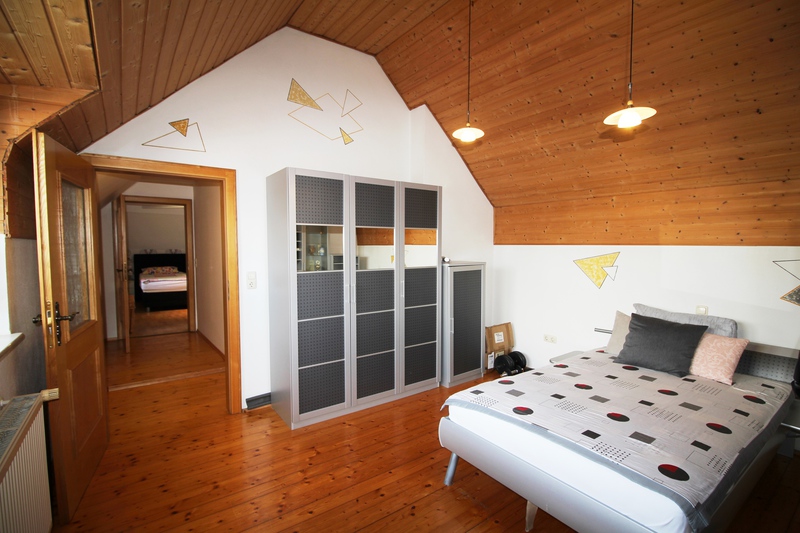 Im Obergeschoss sind 3 Schlafzimmer untergebracht. Von einem Schlafzimmer aus gelangt man auf den Balkon mit Blick auf den schönen Innenhof und die Einfahrt. In diesem Schlafzimmer befindet sich auch ein großer, begehbaren Kleiderschrank.