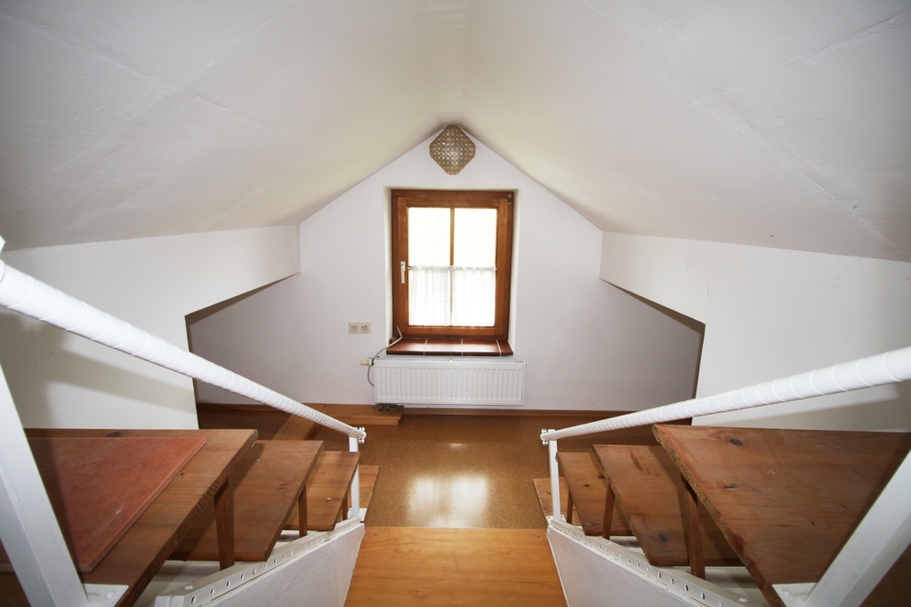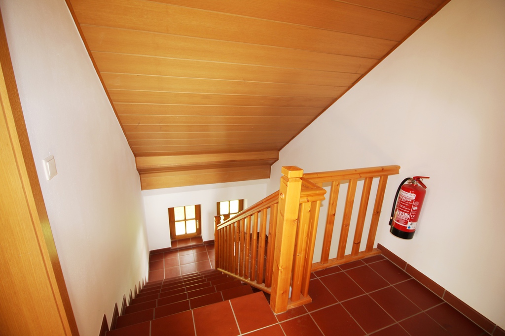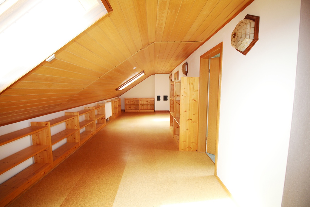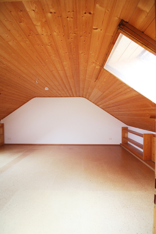 Das Dach ist vollständig ausgebaut und birgt eine weitere Wohnung. Die Wohnung im Dachgeschoss erscheint aufgrund der Holzverkleidung und den hochwertigen Korkböden äußerst gemütlich.