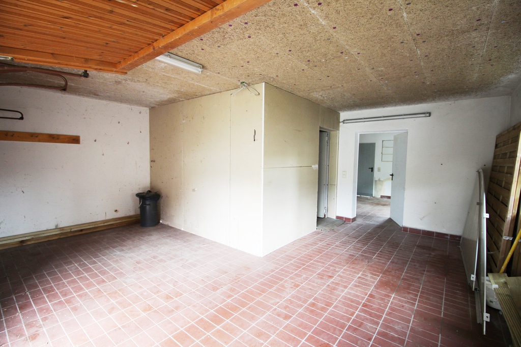 Zu dem Haus gehören eine Doppelgarage und 2 Stellplätze. Hinter der Garage befindet sich eine große Werkstatt mit Geräteraum.