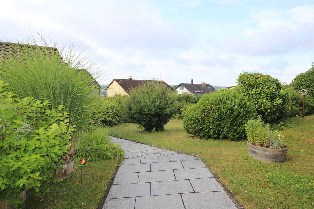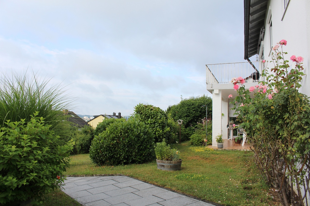 Von dem Balkon und von der Terrasse genießen sie einen wunderbaren Blick auf Passau und in den schönen, großzügigen und sonnigen Garten.